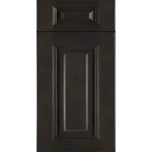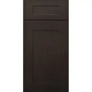 Stained stock kitchen cabinets in rich brown and sophisticated grey tones. This finish option highlights the natural wood grain patterns, adding depth and character to your kitchen design. The stain treatment penetrates the wood surface, enhancing its natural beauty while providing protection from daily wear.